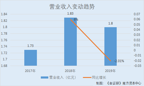 2017-2019年,丰光精密实现的营业收入分别为1.73亿元、1.83亿元、1.8亿元,2018-2019年分别同比增长6%、-2.01%。