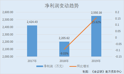 2017-2019年,丰光精密实现的净利润分别为2,424.43万元、2,205.62万元、2,550.16万元,2018-2019年分别同比增长-9.03%、15.62%。