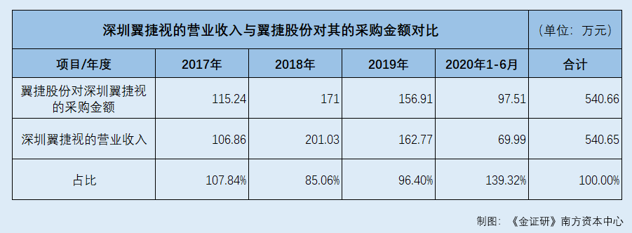 这意味着,报告期内,翼捷股份对深圳翼捷视的累计采购额为540.66万元,深圳翼捷视营业收入累计为540.65万元。可见,深圳翼捷视营收对翼捷股份或构成“依赖”。