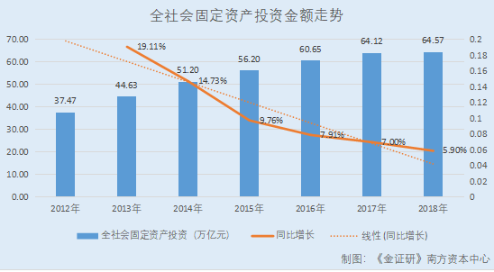 据招股书引援国家统计局数据,2012-2018年,中国全社会固定资产投资金额分别为37.47万亿元、44.63万亿元、51.2万亿元、56.2万亿元、60.65万亿元、64.12万亿元、64.57万亿元,2013-2018年分别同比增长19.11%、14.73%、9.76%、7.91%、7%、5.9%,增速连续6年下滑。