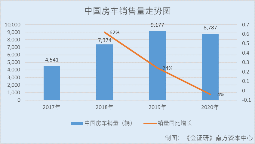 然而《金证研》南方资本中心研究发现,2018年来,中国房车销量的增速逐年下滑。