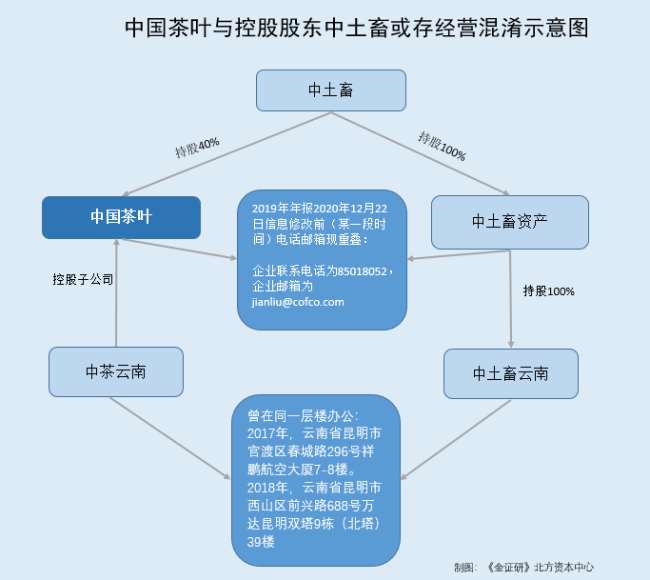 除此之外,中国茶叶的子公司与中土畜的孙公司或曾在“同一层楼”办公。