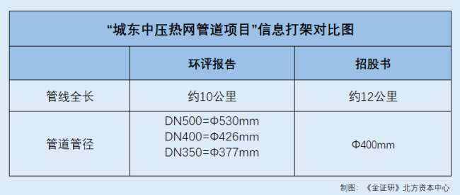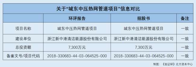 通过对比项目名称、投资金额及备案文号等信息可以看出,城东管道环评报告披露的项目,与招股书披露的“城东中压热网管道项目”为同一项目。