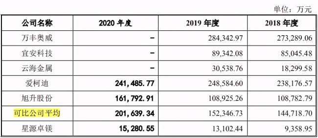 星源卓镁成立于2003年,主要从事镁合金、铝合金精密压铸产品及配套压铸模具的研发、生产和销售,设立时以压铸模具业务为主,2006年向下游铝合金压铸领域延伸,自2009年将主要研发生产方向转向镁合金业务领域。2018年-2020年,星源卓镁的营业收入分别为1.06亿元、1.47亿元和1.74亿元;净利润分别为3070.22万元、4918.83万元和6019.92万元,与同行业可比公司相比,经营规模较小。