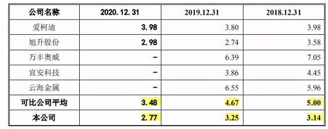 2018年末2020年末,公司存货账面余额分别为1,734.77万元、2,450.12万元和3,227.23万元,存货逐年增长,并且2020年存货周转率下降,公司称由于存货中周转率较慢的模具金额占比增长,同时期末原材料备货增加导致。与同行对比,2018年-2020年,公司存货周转率均低于同行业可比公司平均水平。