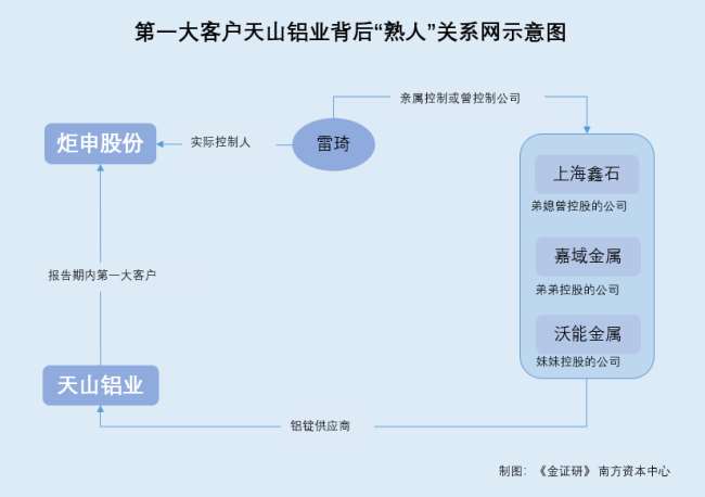 从年交易额不足千万元到上亿元,双方交易额攀升的另一面,天山铝业与炬申股份背后或现“熟人”关系网。