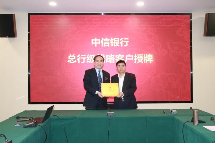 会上,中信银行西安分行党委书记、行长赵大庆代表中信银行向陕鼓颁发了“中信银行总行级战略客户”荣誉奖牌,李宏安董事长代表公司领取奖牌。