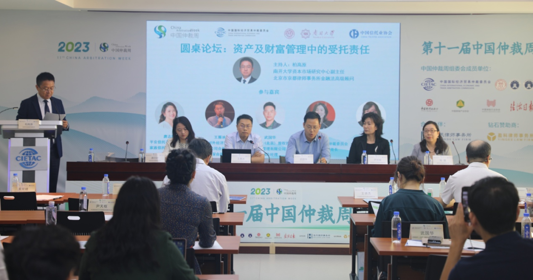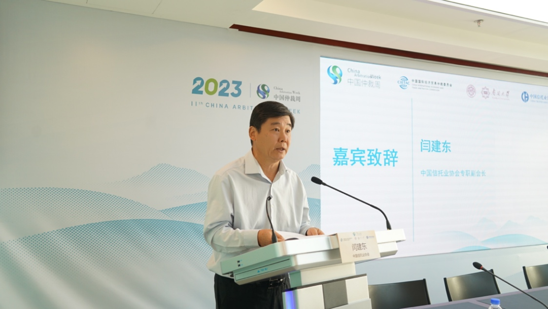 2023年9月12日,由中国国际经济贸易仲裁委员会(以下简称“贸仲”)、南开大学法学院、中国信托业协会联合主办,中国仲裁法学研究会金融仲裁专业委员会支持协办的“中国仲裁周——信托争议解决研讨会”(以下简称“研讨会”)在贸仲北京总会圆满举办。贸仲仲裁院副院长解常晴,北京金融法院党组成员、副院长李艳红,中国信托业协会专职副会长闫建东出席研讨会并发表开场致辞,南开大学法学院院长宋华琳发表线上致辞。贸仲仲裁员、南开大学法学院教授韩良主持会议。