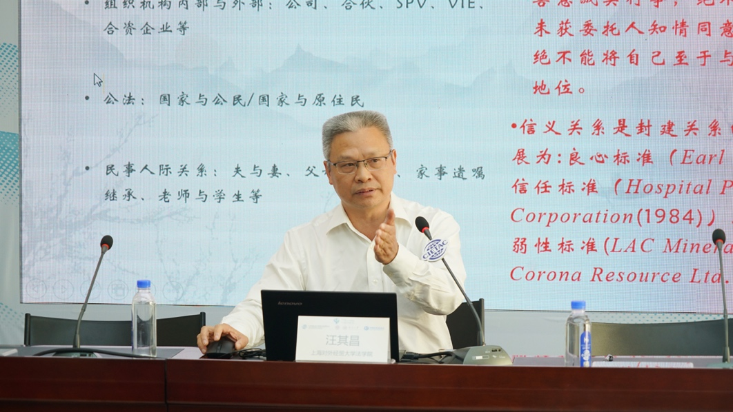 本次研讨会的主题发言环节分为两个部分。 第一部分以“信义义务的法理基础与司法适用”为主题。中国信托业协会首席经济学家蔡概还以《我国信义义务的法理与遵循》为题,指出信义义务是对资产管理人为受益对象最佳利益行事的统称。信义义务源于英美法系的信托法理,但其适用并不囿于信托行业,各项资产管理活动均需遵循信义义务的基本原则,为投资者的最佳利益行事。当受托人或者受托管理人履行了信义义务,投资者风险自担;未能履行信义义务时,则需受托人或者受托管理人以其固有财产承担赔偿责任。贸仲仲裁员、中国银行业协会原首席法律顾问、中国仲裁法学研究会金融专业委员会主任卜祥瑞从信义的本源出发,分析了中国信托业下信义义务的发展历史,指出信义义务兼具约定性与法定性,当前信义义务的概念在法律规范与裁判中已经得到体现。卜主任指出,在信托裁判中,不能轻易否定信托合同效力,要慎用通谋虚伪穿透审判思维并谨慎适用违反公序良俗原则。上海对外经贸大学法学院副教授汪其昌以《信义法的法理基础与司法适用》为题,指出信义义务包含忠义义务、谨慎注意义务与其他判例规则形成的义务。汪教授表示,对信义义务的考察同时要从经济的视角出发,信义义务是一种或有负债,起到保障交易安全与效率的功能,并在国际贸易融资中具有重要意义。