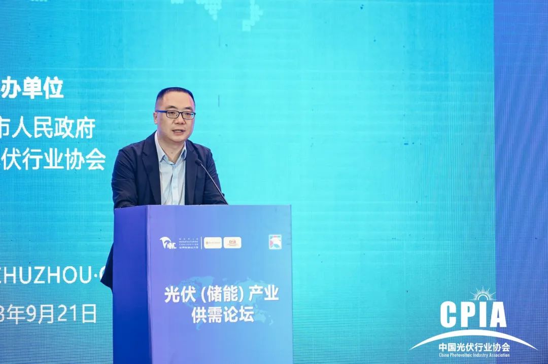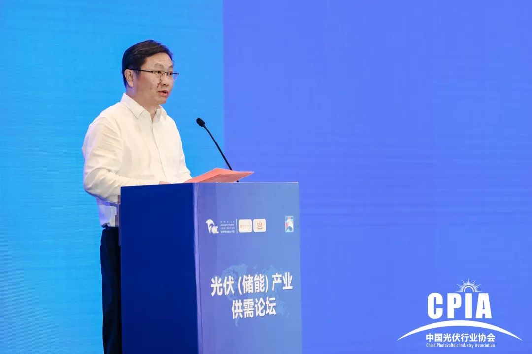 中国光伏行业协会理事长曹仁贤出席会议并致辞。曹仁贤理事长表示,光伏行业发展迅速,但行业内外部多种因素叠加,使得光伏与储能市场供需形势复杂多变。唯有坚持注重创新、推动绿色发展、积极探索数字化智能化以及重视国际化全球化发展,才能维持光伏行业和储能行业的供需平衡,持续稳定繁荣增长。