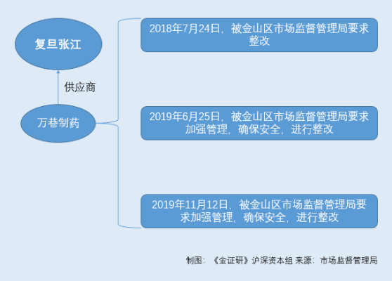 其中,2019年6月25日和2019年11月12日,万巷制药均被金山区市场监督管理局要求加强管理,确保安全,并采取措施进行整改。