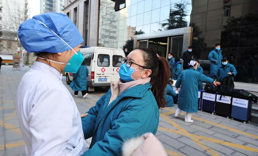 内六病区主任刘新对其病区护士长吕娅敏不停嘱咐:“记得洗手!做好防护!别太累!”,吕娅敏说:“记得了,刘主任,你都说了多少遍了,我们走了,别担心”。望着同事远去的背影,刘新终于忍不住泪湿眼眶。