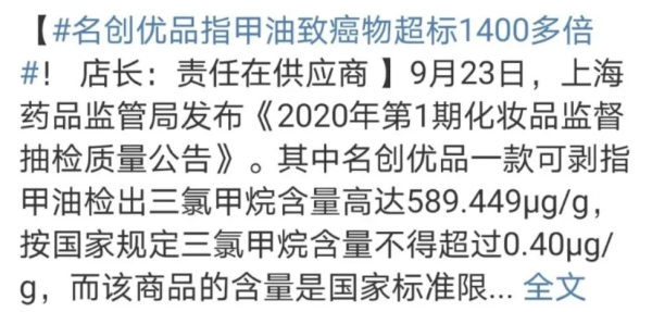 关键词:名创优品,指甲油,致癌物