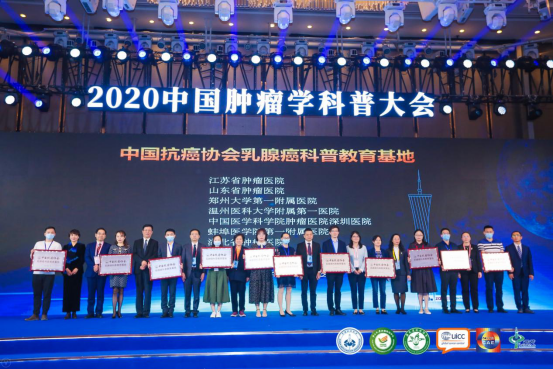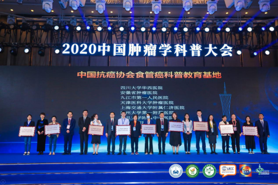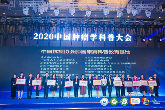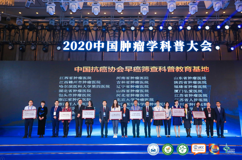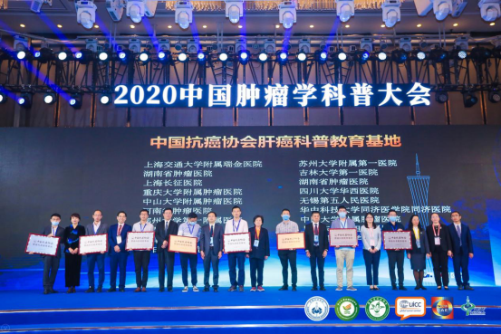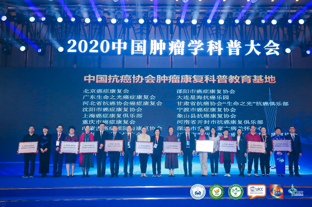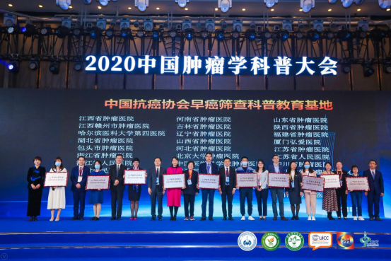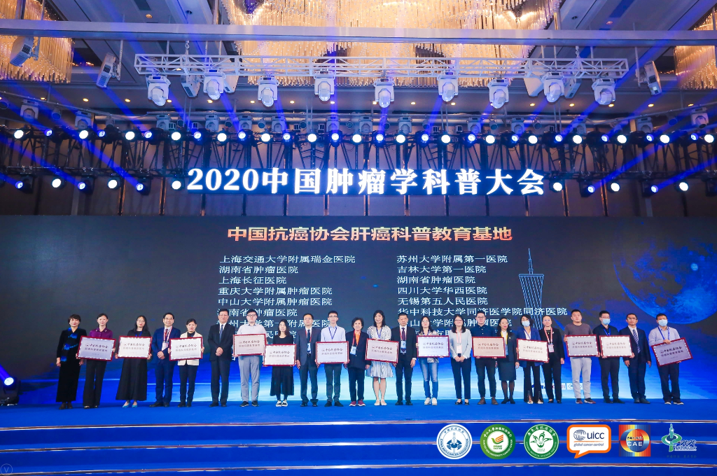 2020中国肿瘤学大会(CCO)上中国抗癌协会新增科普教育基地授牌仪式隆重举行,中国抗癌协会副理事长朴浩哲教授,中国抗癌协会副秘书长应敏刚教授,中国抗癌协会科普部部长兼科普专委会主任委员支修益教授,中国抗癌协会康复分会会长史安利教授,中国抗癌协会科普部及学术部副部长赵勇先生,中国抗癌协会科普部副部长秦茵女士,中国抗癌协会科普部副主任委员张晓东教授,中国抗癌协会科普部常委张维教授,中国抗癌协会科普部副秘书长陈小兵教授,中山大学肿瘤防治中心总会计师丁朝霞女士等10位专家参加授牌仪式,并为各基地授牌。