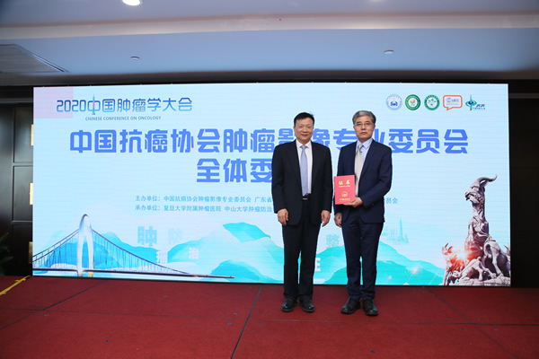 2020年12月13日,中国抗癌协会肿瘤影像专业委员会换届会议在广州阳光酒店举行。全体委员以无记名等额投票方式,选举产生了第五届肿瘤影像专业委员会领导班子:天津医科大学肿瘤医院叶兆祥教授当选为主任委员,中国医学科学院肿瘤医院赵心明教授为候任主任委员,湖北省肿瘤医院刘玉林教授、北京大学肿瘤医院孙应实教授、中山大学肿瘤防治中心李安华教授、福建医科大学附属协和医院季仲友教授、复旦大学附属肿瘤医院顾雅佳教授为副主任委员。聘请复旦大学附属肿瘤医院彭卫军教授为第五届专业委员会名誉主任委员。