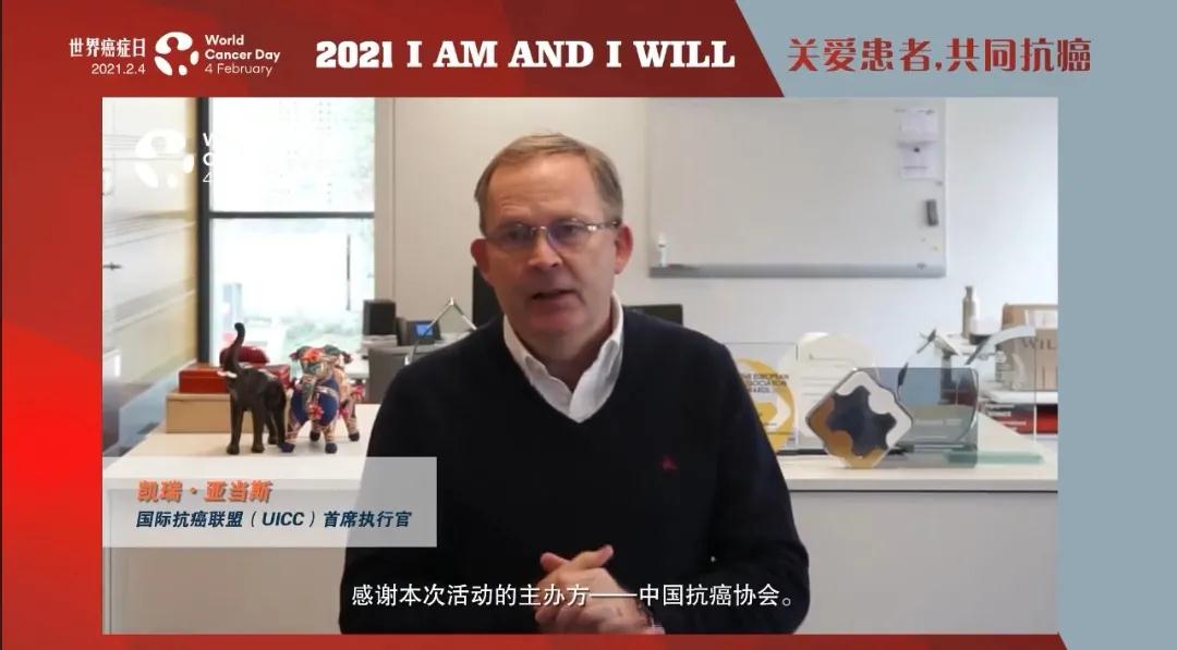 国际抗癌联盟(UICC)的首席执行官Cary Adams代表国际抗癌联盟对活动表示祝贺,并对中国抗癌协会多年来对2.4世界癌症日活动做出的贡献表示感谢。他指出,全球癌症防控工作需要全世界共同参与,但由于新冠疫情的影响,过去一年里我们遇到了很多干扰和挑战,但只要我们团结一致,携手共进,就一定可以共度难关,走向胜利。未来,我们将通过大力推进宫颈癌疫苗接种等重点工作,不断推进全世界癌症防治事业的发展。