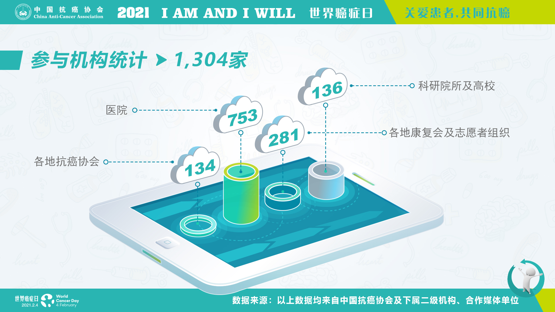 活动期间,全国各地参与活动的中国抗癌协会专委会、各级省市自治区抗癌协会、医疗机构、科研院所、高校、企事业单位、康复会及各类公益组织等达到1,304家;