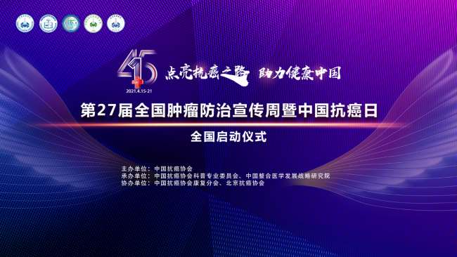 由中国科学技术协会科普部、国家卫生健康委员会疾控局指导,中国抗癌协会主办,中国抗癌协会肿瘤防治科普专业委员会、中国整合医学发展战略研究院承办,中国抗癌协会康复分会、北京抗癌协会协办的“第27届全国肿瘤防治宣传周暨中国抗癌日”将于2021年4月11日上午9时在新华网媒体创意工场举行启动仪式,此次宣传周主题为“点亮抗癌之路,助力健康中国”。
