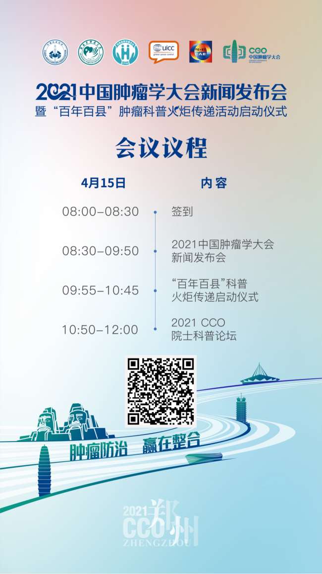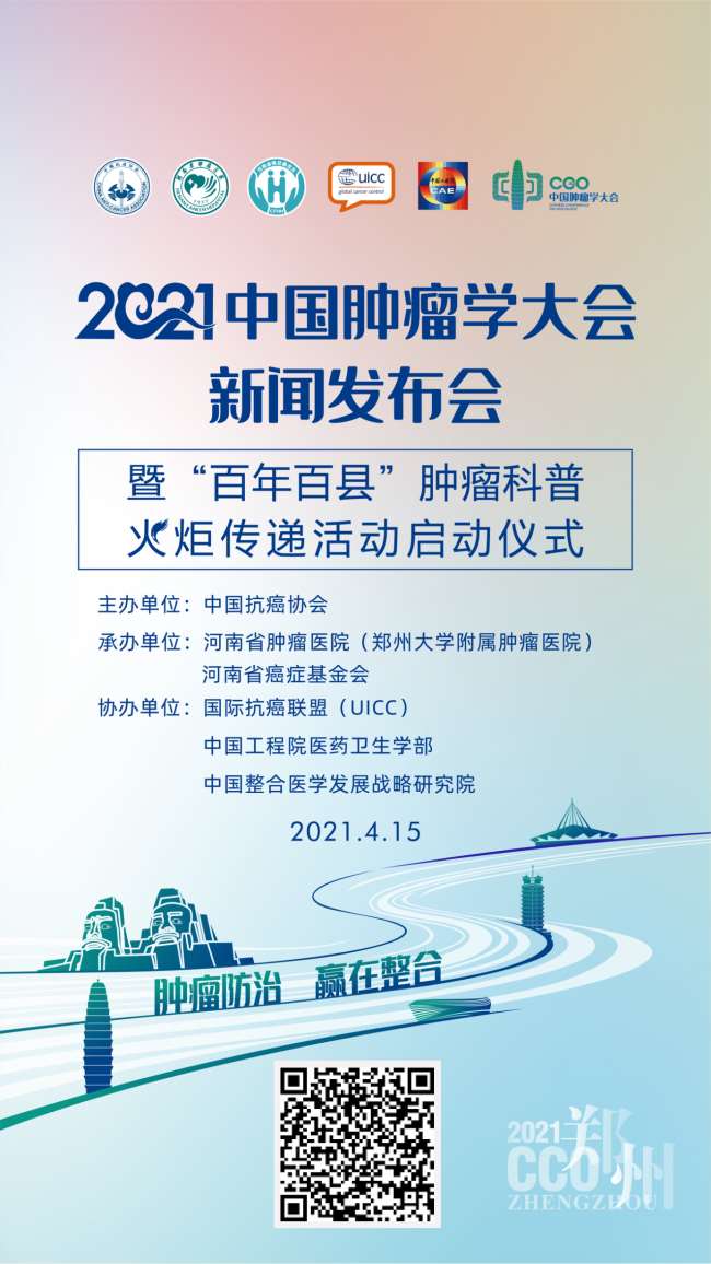 2021中国肿瘤学大会新闻发布会暨百年百县肿瘤科普火炬传递活动启动仪式将于4月15日上午08:00-12:00在中国郑州如期举行,会议将通过CACA APP客户端进行线上同步直播。