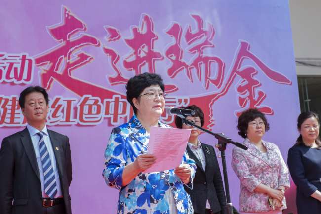 中国抗癌协会王瑛秘书长指出,癌症是威胁人民健康的重大慢病之一。因此,癌症防控是造福基层群众、提升群众幸福指数的重要举措。瑞金是共和国的摇篮、红色故都,中国抗癌协会在2013至2015年连续三年承接民政部贫困地区癌症救助的试点项目,在江西瑞金地区开展妇女两癌筛查救助活动,深受广大瑞金人民的欢迎。她希望,通过一系列的公益活动,树立瑞金老区人民科学防癌的理念,建立健康的生活方式,降低肿瘤发病率。