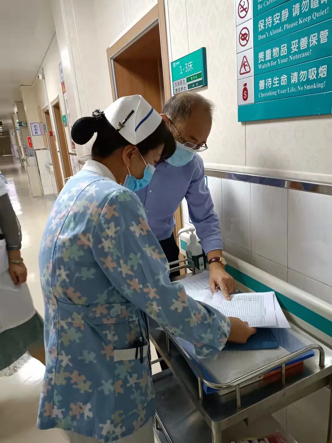检查中,王双全院长重点检查节日期间疫情防控、医疗安全及医护值班等工作,详细询问了近期科室业务发展情况,并为职工们送上了中秋节日祝福。他要求各科室要加强责任心,提高服务质量、提升服务水平,切实保障节日期间医院各项工作的平稳运行,为患者提供一个安全、和谐的就医环境。