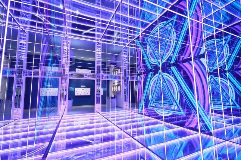 上方图片为光影通道网红打卡区及拍照留念打卡区,光影的变化引人驻足,参观者可在出口处留下打卡纪念。