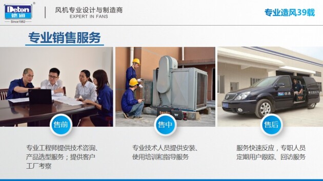 德通风机一直以来,以“四个专业”为核心去做好每一台产品,每一次服务。