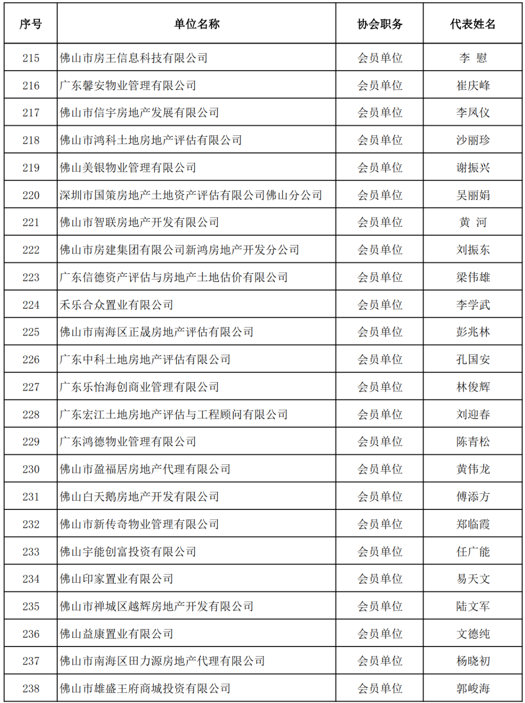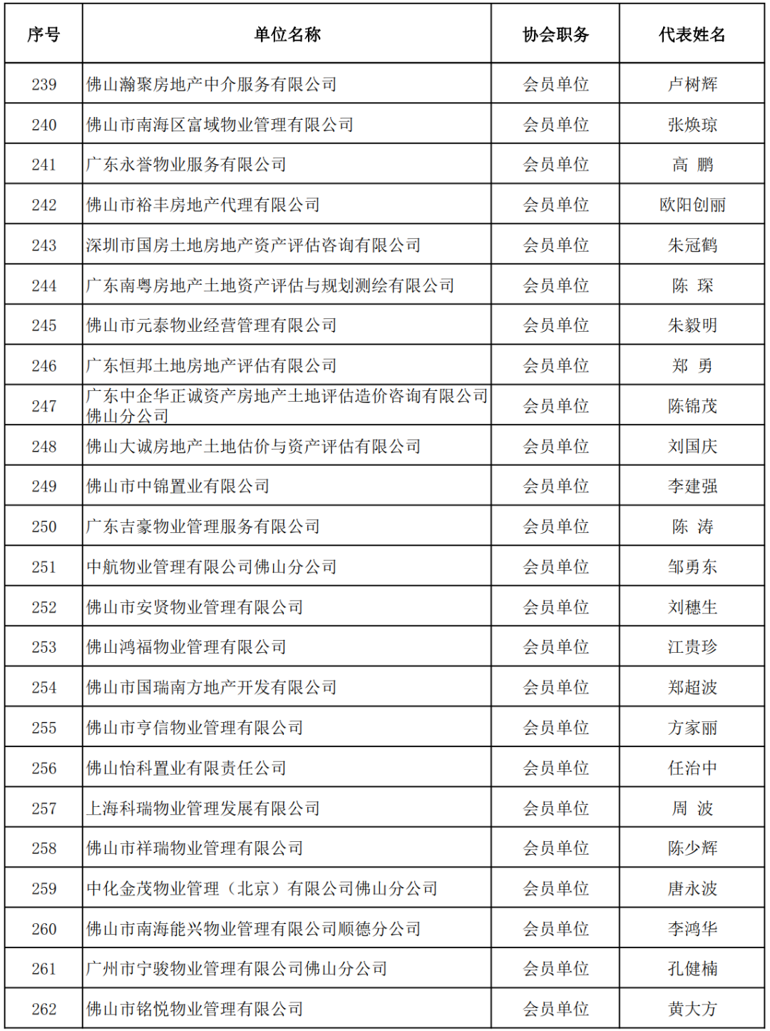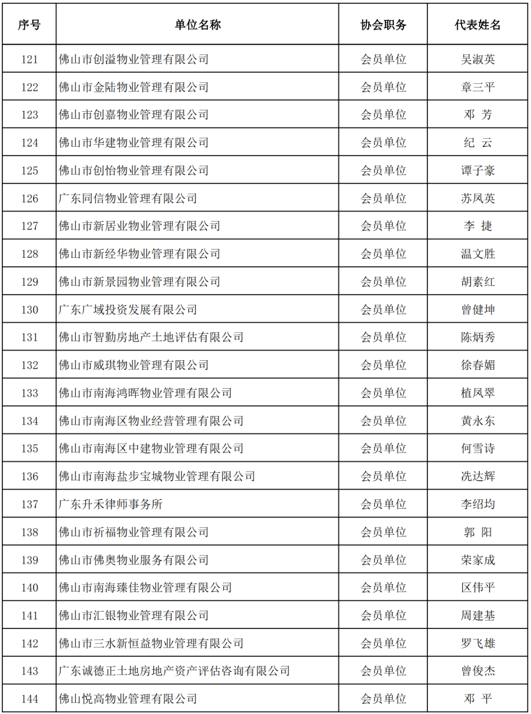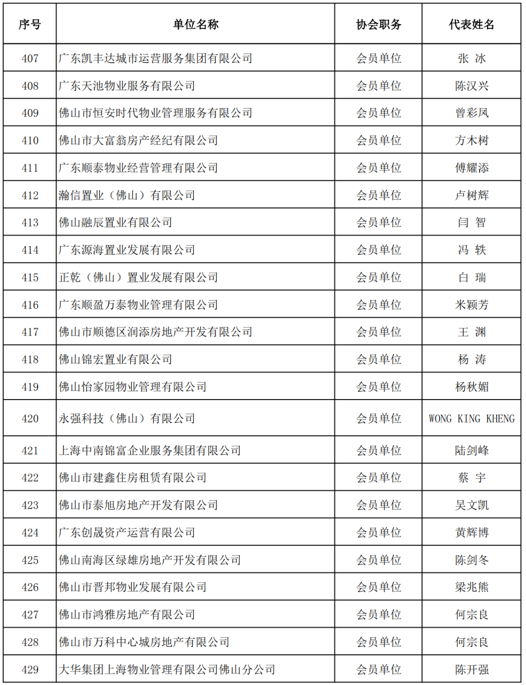 【企业家精神奖】 佛山市东建集团有限公司董事长 钟流汉 佛山市兆阳房地产投资有限公司董事长 李凤仪 广东恒福投资集团控股有限公司副总裁 殷侃 广东国安物业经营服务有限公司董事长 周卫国 浙江颐景园物业服务有限公司广东区域公司总经理 欧阳伟婷 佛山悦高物业管理有限公司董事长 邓平 广东唯兴物业管理有限公司董事长 刘东江 佛山市铭悦物业管理有限公司董事长 黄大方 佛山市合富辉煌房地产顾问有限公司总经理 李慰 佛山市富盛市场研究顾问有限公司总经理 骆仪克 佛山&肇庆中原地产代理有限公司、佛山&肇庆藤云网络科技有限公司 董事总经理、创始人 余鸿 广东南兴宇房地产与土地资产评估有限公司董事长 伍宇漩 国众联资产评估土地房地产估价有限公司佛山分公司总经理 张志军