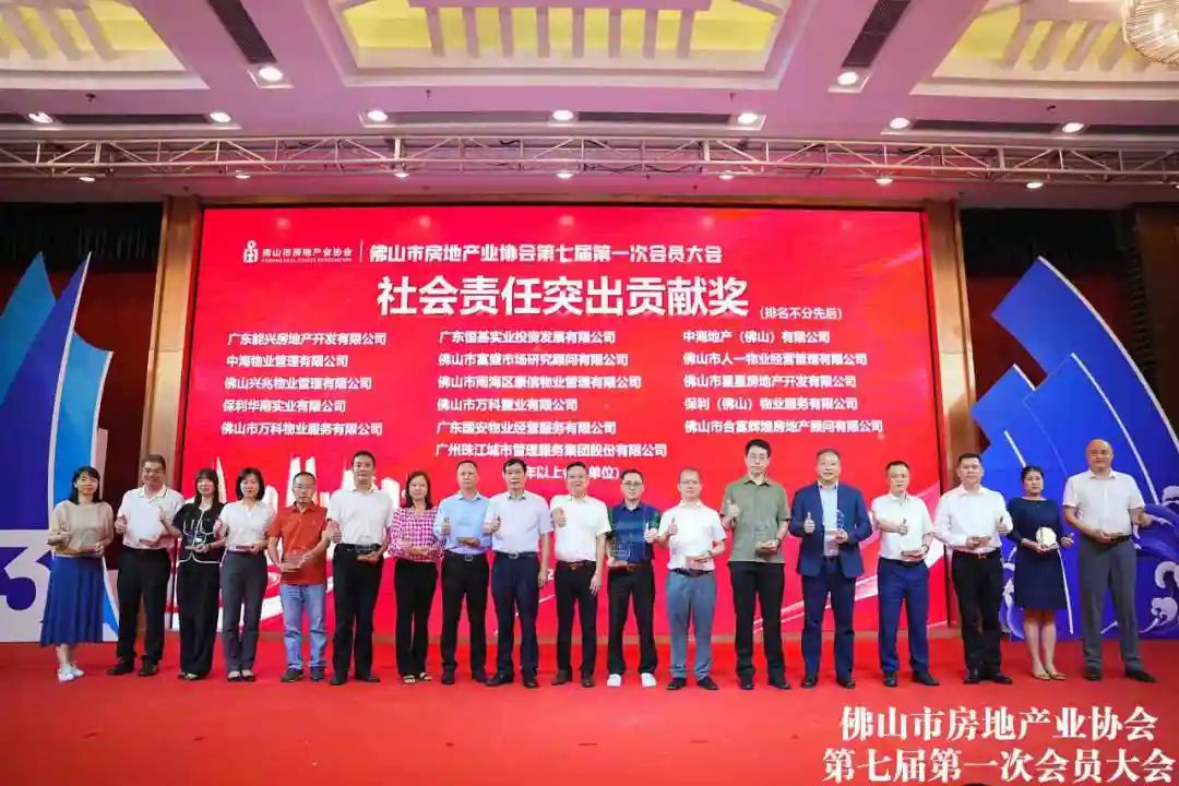 【社会责任突出贡献奖】 广东能兴房地产开发有限公司 广东恒基实业投资发展有限公司 中海地产(佛山)有限公司 中海物业管理有限公司 佛山市富盛市场研究顾问有限公司 佛山市人一物业经营管理有限公司 佛山兴兆物业管理有限公司 佛山市南海区豪信物业管理有限公司 佛山市星星房地产开发有限公司 保利华南实业有限公司 佛山市万科置业有限公司 佛山市合富辉煌房地产顾问有限公司 广州珠江城市管理服务集团股份有限公司 广东国安物业经营服务有限公司 佛山市万科物业服务有限公司 保利(佛山)物业服务有限公司
