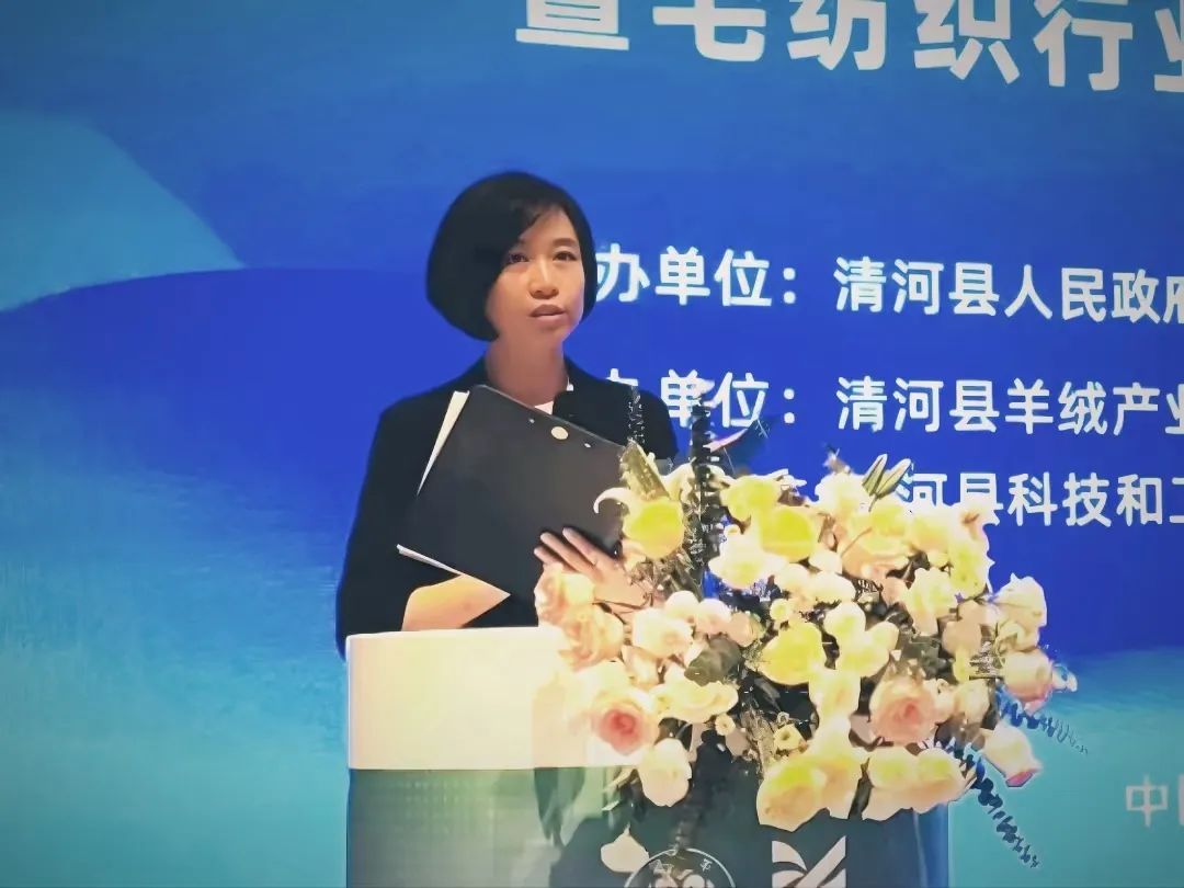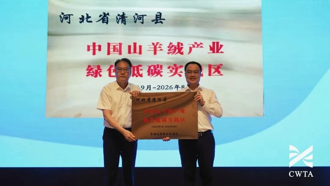 会上,中国毛纺织行业协会授予清河县“中国山羊绒产业绿色低碳实践区”称号。