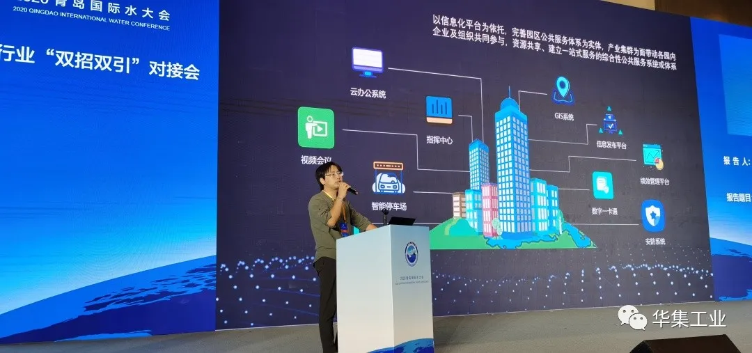 华集工业副总经理李思江向参会代表详细介绍了华集工业对于中国“智慧园区”建设的全新构想与解决方案。