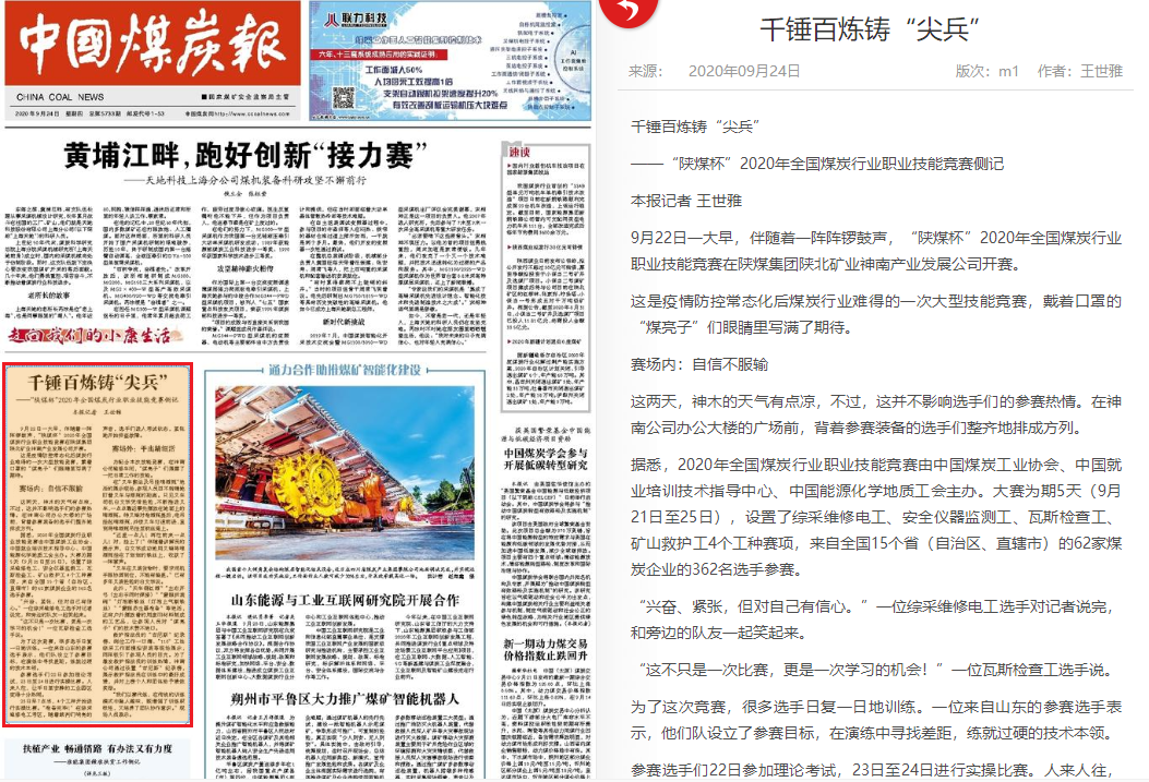 中国煤炭报 2020年09月24日 1版