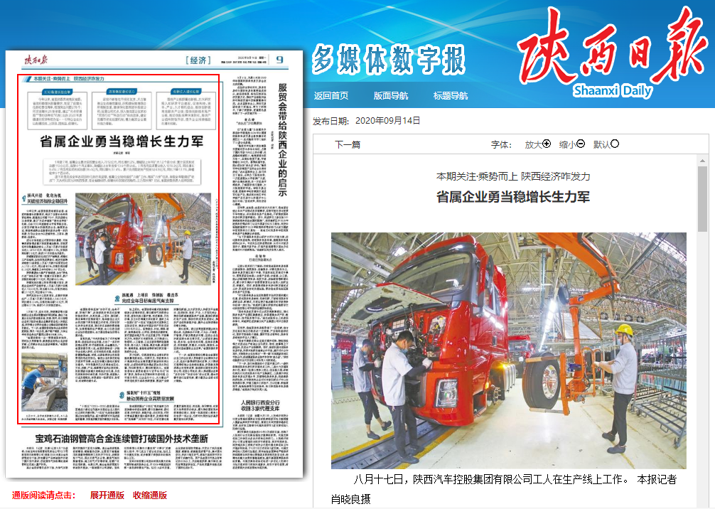 陕汽控股全力以赴抓项目,多措并举保生产,1月至7月累计实现收入545.3亿元,同比增长13.4%;实现利润总额5.6亿元,同比增长17.2%,连续3个月实现正增长。