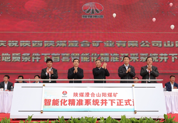 伴随着一声“陕西陕煤澄合矿业有限公司山阳煤矿渭北复杂地质条件下首套智能化精准开采系统正式运行”的宣布,杨照乾、王双明、王世斌、叶东生、白永明共同推动启动卷轴,标志着澄合智能化矿山建设梦想正式扬帆起航。该系统的运行,对推动关中老矿区实现渭北复杂地质条件下的矿井综采智能化系统应用起到了示范引领作用。