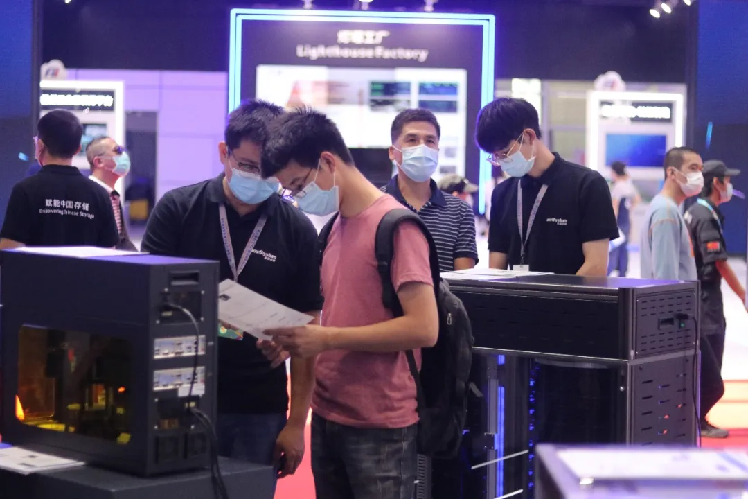 展会来宾与紫晶存储员工探讨光存储技术在不同行业的应用情况