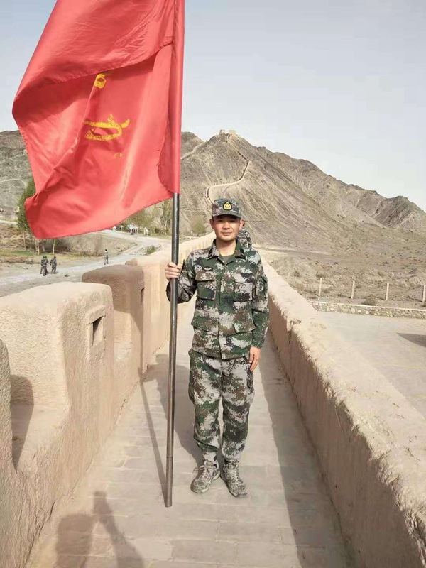 图为王智鹏守卫国防边境时的情景