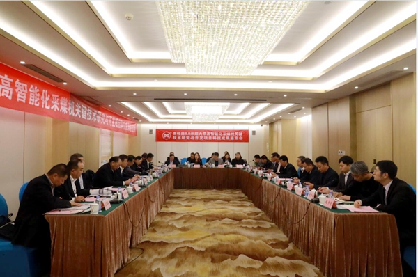 项目组从立项背景、主要技术参数、研究内容与创新点、主要技术成果、推广应用、经济社会效益六个方面,向专家鉴定组汇报了“高性能8.8米超大采高智能化采煤机关键技术研究与开发”项目。