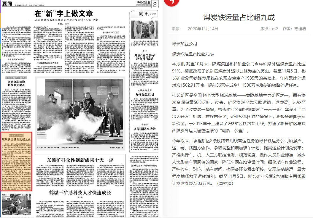 今年以来,承担矿区2条铁路专用线营运任务的彬长铁运分公司加强产、运、销、路四方协作,争取调整和增加装车计划,提高运输计划兑现率;严格执行车、机、人三方联控准则,规范调度、操作人员作业标准,减少人为影响车辆周转的因素,降低车辆在站停留时间;细化装车作业流程,严控检车、对位、装车时间,确保各环节紧密衔接,实现快装快运,最大程度地释放了运输潜能。截至11月5日,彬长矿业公司2条铁路专用线累计发运煤炭7303万吨。