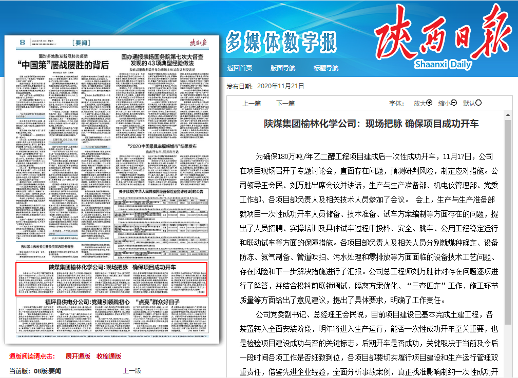 关键词:陕煤集团榆林化学公司,项目
