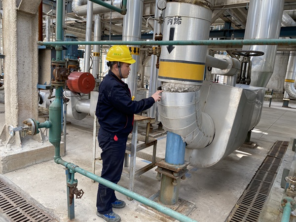 严抓生产管理,由生产技术部牵头,组织各生产中心认真落实“达产达标达效”大会战措施,形成定人定责、定时定标的工作体系,倒逼各岗位、各层级、各专业人员担当作为。实抓过程管理,提高对岗位巡检、设备点检、波动管理等的监督检查力度和频次,加强对C4回炼项目等大型技改项目运行管理,保障生产稳定运行。在此基础上,由调度室根据目标责任和各装置实际情况,统一规划生产负荷,实现产量稳中求进目标。细抓设备管理,全面推进防冻防凝工作,对裸露设备进行保温棉加装,对伴热设备进行及时投用,对存在问题进行逐一消缺,促进设备长周期运行。巧抓降本增效,将产耗能耗目标责任分解到班组,并与月绩效分配挂钩,强化员工节约意识,激发创效动能。