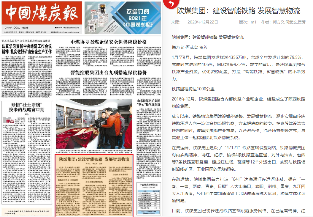 2016年12月,陕煤集团整合内部铁路产业和企业,组建成立了陕西铁路物流集团。