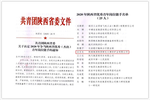 日前,共青团陕西省委下发文件,全省各地、各行业、各机关企事业单位25名同志当选2020年陕西省“优秀青年岗位能手”,陕煤集团彬长大佛寺矿业有限公司白玉龙位列其中,他也是陕煤集团此次唯一一个获此殊荣的青年。