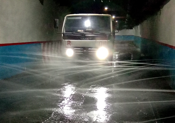 “瞧,井下也有了‘自动洗车店’,胶轮车可以天天穿新衣了。”随着一辆辆胶轮车有序驶入,依次进入洗车区域,满带灰尘的胶轮车变得焕然一新。日前,由彬长矿业孟村矿通风部、运输队职工发明的“自动洗车装置”在井下应用,在清洁设施、改善井下工作环境的同时,也有效降低粉尘再生。