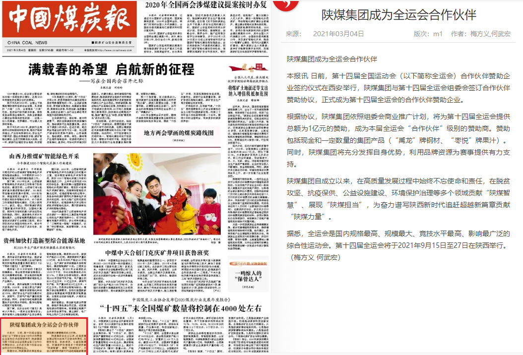 陕煤集团成为全运会合作伙伴