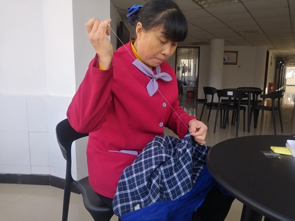 “来,交给我,这缝缝补补的事可是我们的拿手活。”热心的蔡大姐拿起住户手里的破洞衣服,急忙飞针引线地缝补起来。
