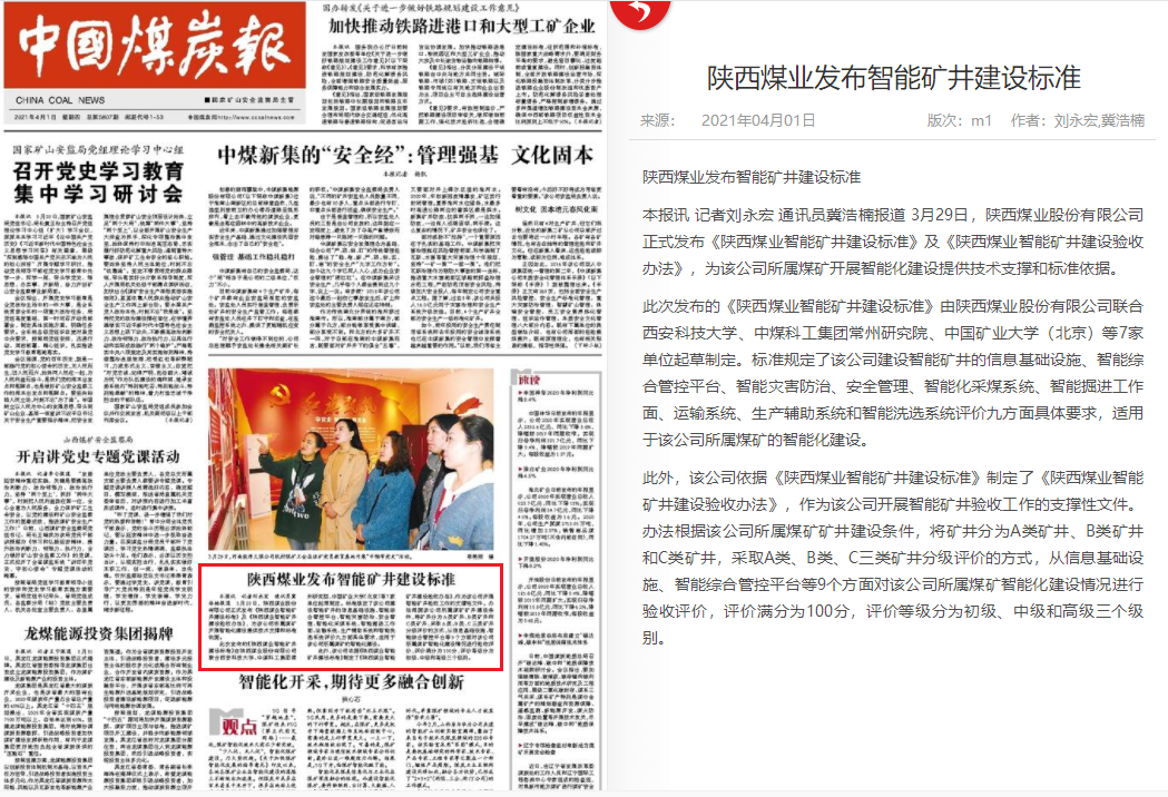 本报讯 记者刘永宏 通讯员冀浩楠 报道 3月29日,陕西煤业股份有限公司正式发布《陕西煤业智能矿井建设标准》及《陕西煤业智能矿井建设验收办法》,为该公司所属煤矿开展智能化建设提供技术支撑和标准依据。