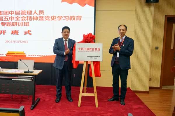 近日,陕化公司“党员干部教育基地”在渭华干部学院举行揭牌仪式,同时也拉开了公司第一期党史学习教育培训班的帷幕。陕化公司党委书记、董事长、总经理屈战成,渭华干部学院副院长王峰共同为“党员干部教育基地”揭牌。