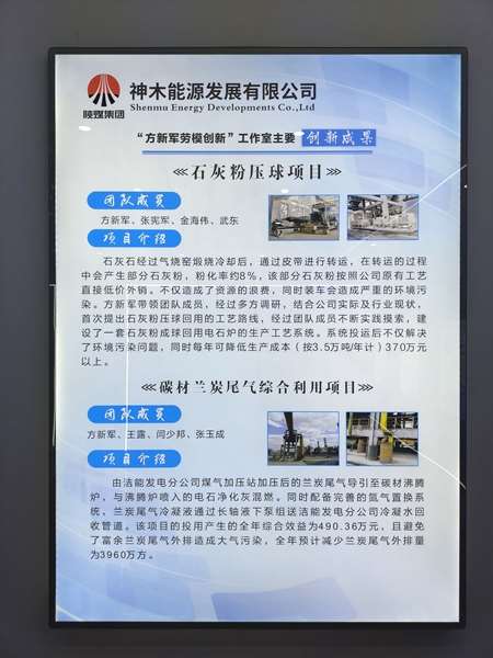 “典例上墙”展风采。能源公司将《石灰粉压球项目》《兰炭小料的掺烧》《电石炉智能化升级改造》《一二期主蒸汽、朱凝结水管道并联项目》《现代化集中控制室升级改造》等重要创新成果定制成栏,装于墙体,以激发员工创新意识,增强员工创新能力,加强各分公司之间的科技创新与交流互鉴,优化科研管理并促进技改技措及转型升级发展。