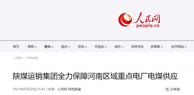 随着入豫通道的逐步“解封”和优质产能快速释放,按照既定保供方案,陕煤运销集团预计7天内可向河南供应超20万吨电煤,持续保供将确保各电厂在灾区重建期间不缺煤、不停机、不断电。