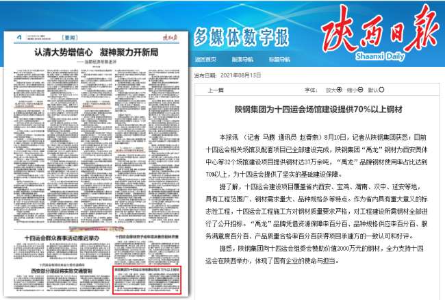 据悉,陕钢集团向十四运会组委会赞助价值2000万元的钢材,全力支持十四运会在陕西举办,体现了国有企业的使命与担当。